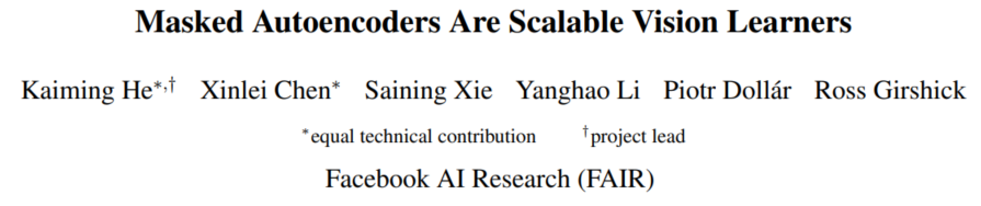 [MAE] Masked Autoencoders Are Scalable Vision Learners