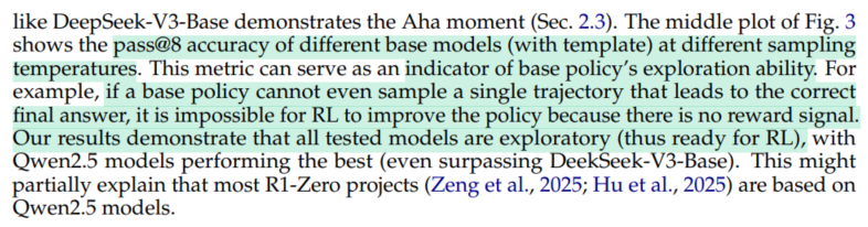 DeepSeek-R1 의 empirical results가 놀라웁긴 했지만, 의문이 들었던 것은, base model에 agnostic하게 적용이 되느냐?였다.