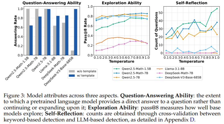다르게 말하자면, reasoning ability가 base model에서 기인한건지, 오직 RL training으로 인한 건지 의문이었다.