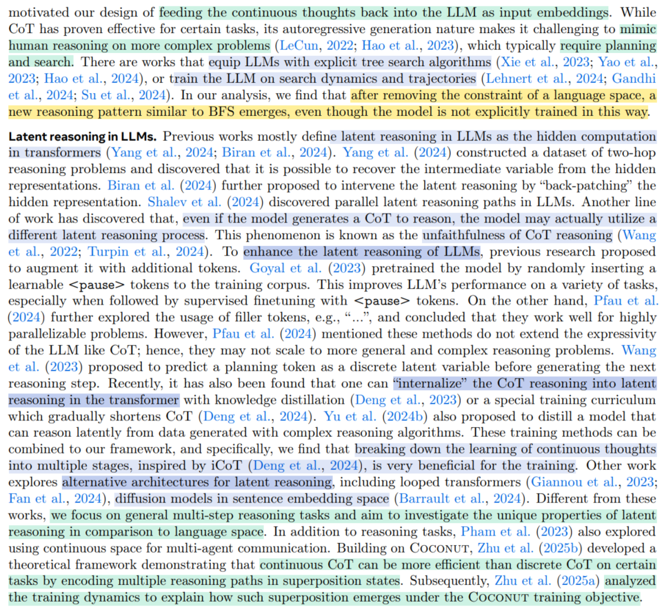 인간은 문제를 풀 때, 이렇게도 저렇게도 풀어보고 최종 답을 도출한다. 그러한 점에서, planning이나 search가 필요한 복잡한 추론 상황 하에서 latent reasoning은 상당히 매력적으로 느껴진다.