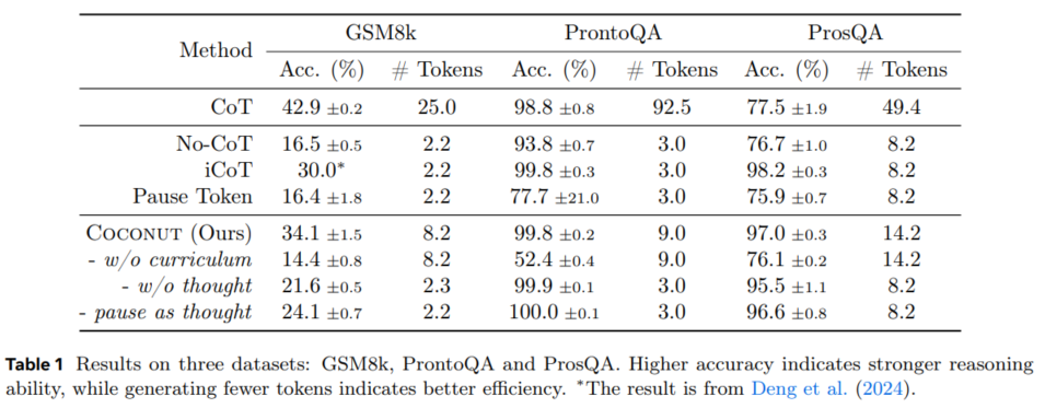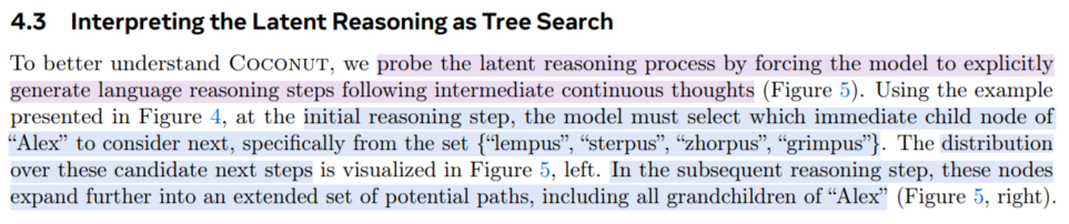 이것은 continuous representation of reasoning이 다음 reasoning step의 여러가지 대안을 encoding할 수 있기 때문임을 저자들은 실험적으로 보여준다.