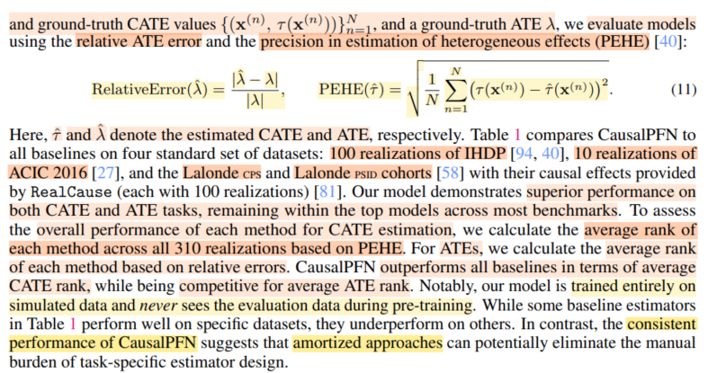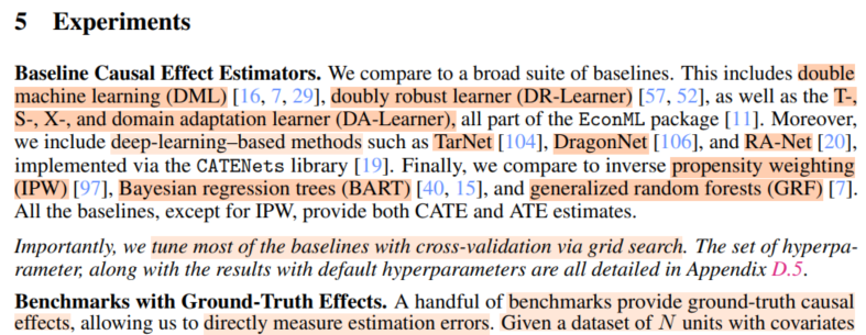 3. DoPFN에서 실험을 할 때 baseline이 다소 빈약하다고 느껴졌다. doubly robust도 등장하지 않았고, 그 많은 learner 들 중에 아주 기본적인 learner만 등장했다.더 강력한 baseline과의 비교가 궁금했다.(appendix에 좀더 상세한 experiment result가 나와있다)(물론 이런 baseline은 task specific하게 tuning하긴 하지만 말이다)