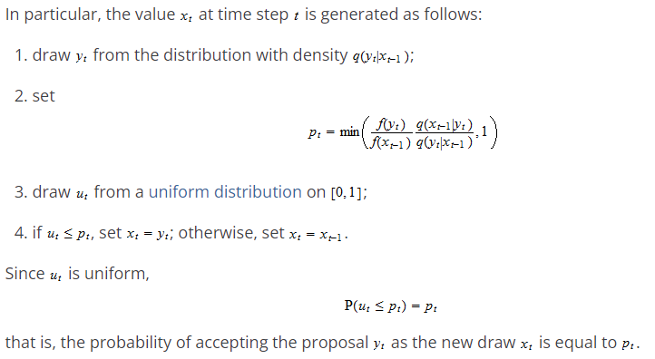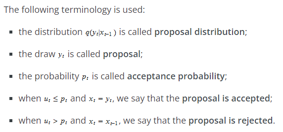 ※ Taboga, Marco (2021). "Metropolis-Hastings algorithm", Lectures on probability theory and mathematical statistics. Kindle Direct Publishing. Online appendix.