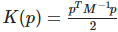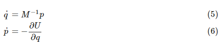 , where M is symmetric, positive definite and typically diagonal. This form of K(p) corresponds to a minus the log probability of the zero mean Gaussian distribution with covariance matrix M, more on the choice of kinetic energy later. For this choice of kinetic energy we can write the Hamiltonian equations as follows: