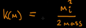 The kinetic energy of the particle is given by the momentum squared divided by 2 times its mass which exactly corresponds to the 1/2MV squres formula. In that formula, M corresponds to the mass and V is the velocity.