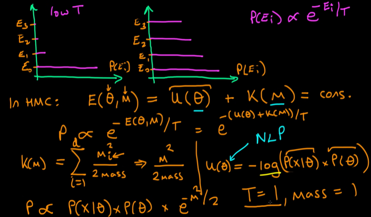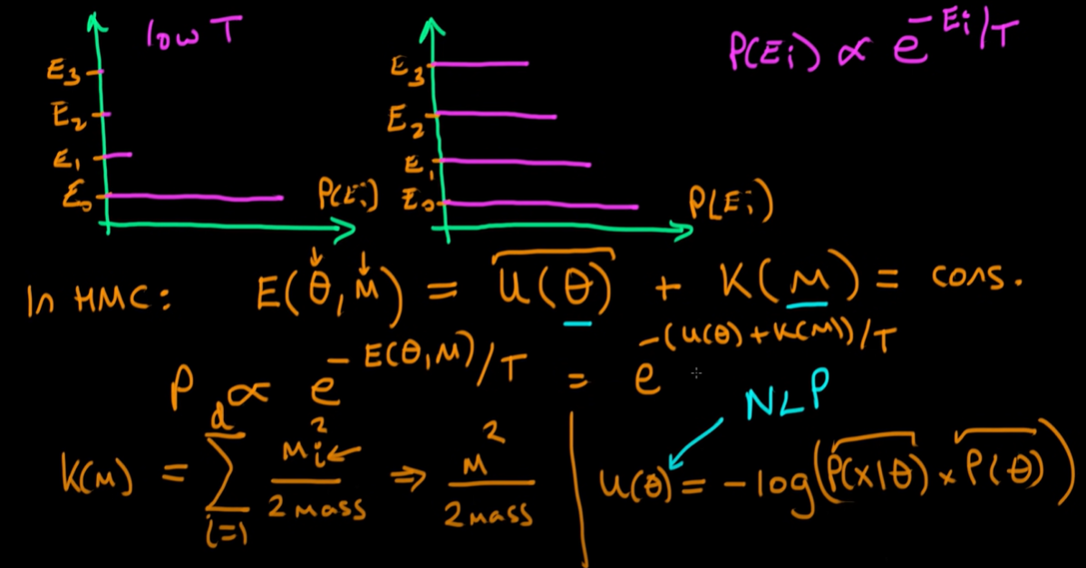 But firstly before I do I want to make it clear theta (our parameter) is typically a vector. Similarly M is also a vector. We choose M to be of the same dimension as that of the theta. Because theta corresponds to the position in this multi-dimensional space and associated with each position direction, there should also be a corresponding momentum.