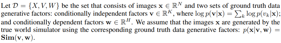 More formally, we start from a dataset D = {X, V, W} as described in Sec. 2, assumed to contain a balanced distribution of ground truth factors (v, w), where images data points are obtained using a ground truth simulator process x ∼ Sim(v, w). We also assume we are given labels identifying a subset of the independent data generative factors v ∈ V for at least some instances. We then construct a batch of B vectors z b diff, to be fed as inputs to a linear classifier as follows: