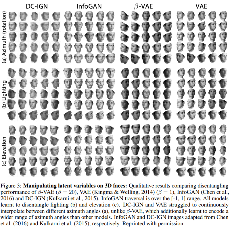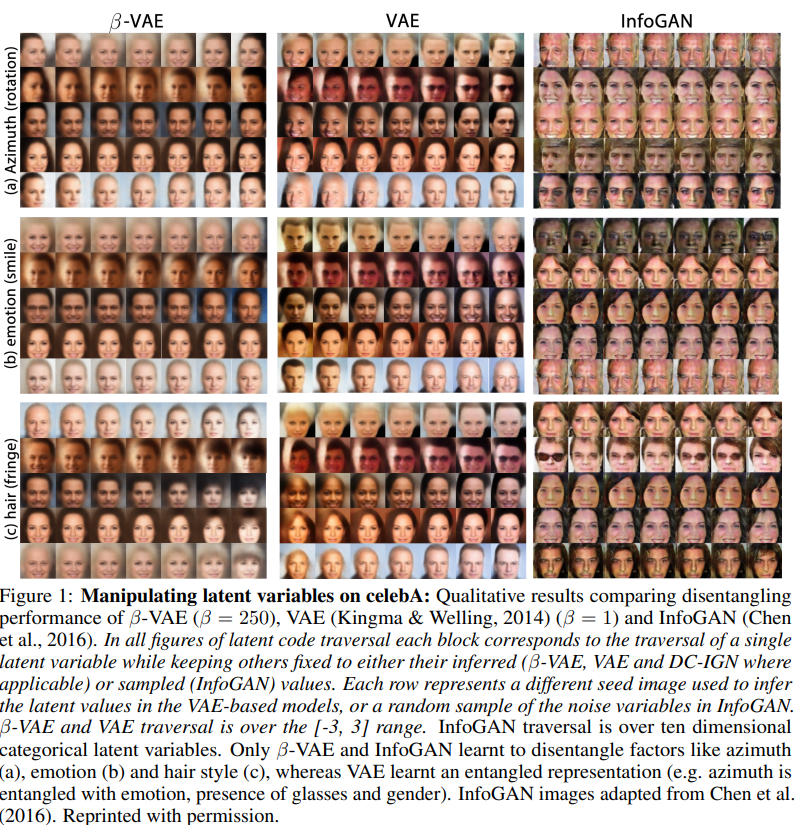 Burgess, et al. (2017) discussed the distentangling in β-VAE in depth with an inspiration by the information bottleneck theory and further proposed a modification to β-VAE to better control the encoding representation capacity.