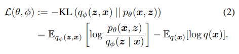 To better understand the various modifications of the VAE objective, which have often been introduced in an ad hoc manner, we here consider an alternate but equivalent definition of the VAE objective as a KL divergence between the generative model pθ(x, z) and inference model qφ(z, x) = q(z | x)q(x),