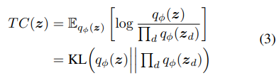 Looking at the β-VAE objective, it seems intuitive that increasing the weight of term 4 is likely to aid disentanglement. One notion of disentanglement is that there should be a low degree of correlation between different latent variables zd. If we choose a mean-field prior