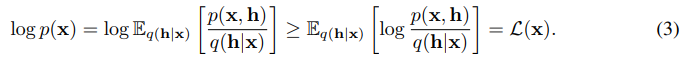 The VAE is trained to maximize a variational lower bound on the log-likelihood, as derived from Jensen’s Inequality: