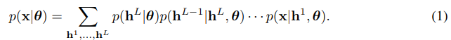 denotes the stochastic hidden units, or latent variables. The dependence on θ is often suppressed for clarity. For convenience, we define h0 = x.