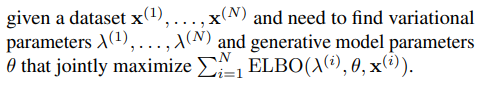 In amortized variational inference (AVI), the local variational parameters are instead predicted by an inference (or recognition) network, which is shared (i.e. amortized) across the dataset.