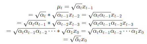 With that equation, we can calculate noise at any arbitrary step t ( is known because is known) without going through the process.