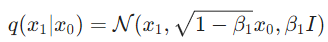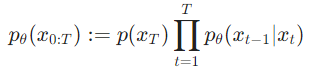 This might seem complicated but it basically says that (diffusion process) is a chain of gaussian transitions starting at and iterating T times using the equation for one diffusion process step