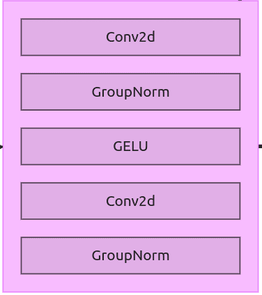 Figure 12: ResNet block The First block we’re going to discuss is ResNet Block. The the ResNet block in this version is simple and linear. This block is used later as a part of downsample and upsample blocks.