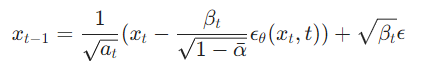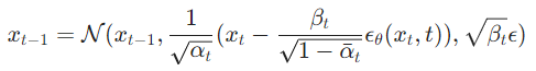 The process looks very simple, but you probably have some questions like “where did you get that equation for output from?”. First, we need to copy the equation for the reverse process from the 2020 paper[2]:
