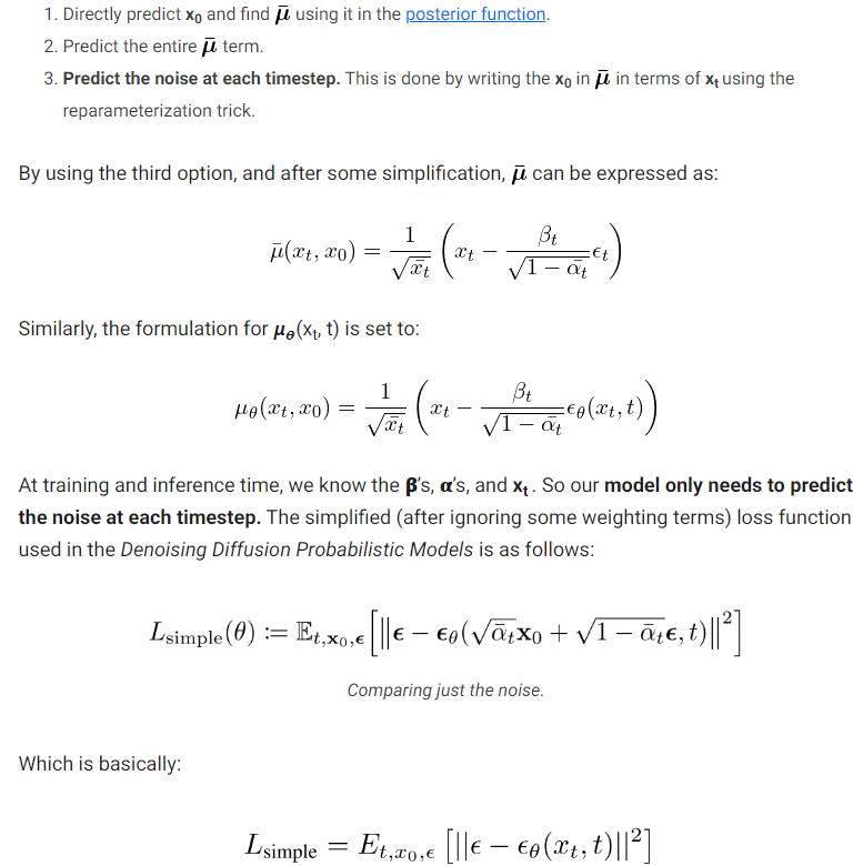 You may notice that this loss function is huge! But the authors of DDPM further simplify it by ignoring some of the terms in their simplified loss function.