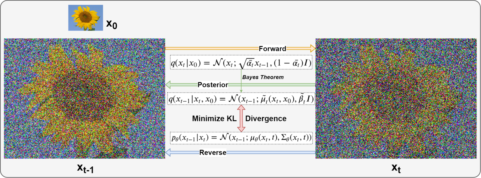 The term q(xt-1|xt, x0) is referred to as “forward process posterior distribution.”
