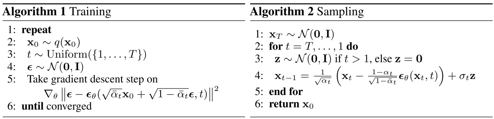 11. Training & Sampling Algorithms Used in Denoising Diffusion Probabilistic Models