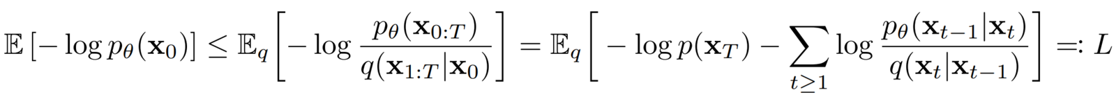 Instead, the authors take inspiration from VAEs and reformulate the training objective using a variational lower bound (VLB), also known as “Evidence lower bound” (ELBO), which is this scary-looking equation 👻: