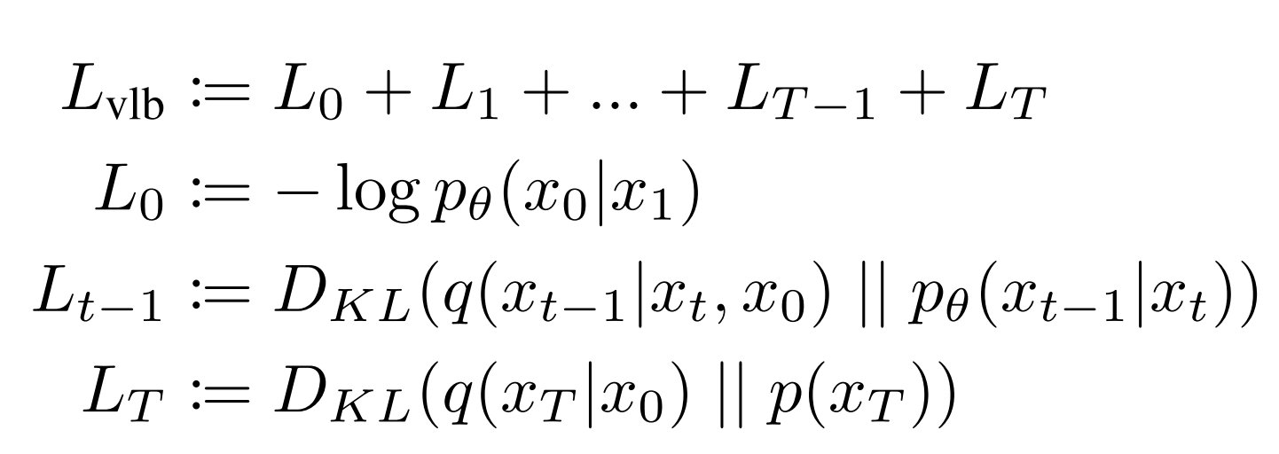 We can break the above Lvlb loss term into individual timestep as follows: