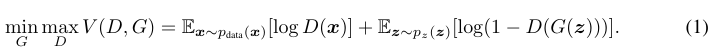 To learn a generator distribution pg over data x, the generator builds a mapping function from a prior noise distribution pz(z) to data space as G(z; θg). And the discriminator, D(x; θd), outputs a single scalar representing the probability that x came form training data rather than pg.