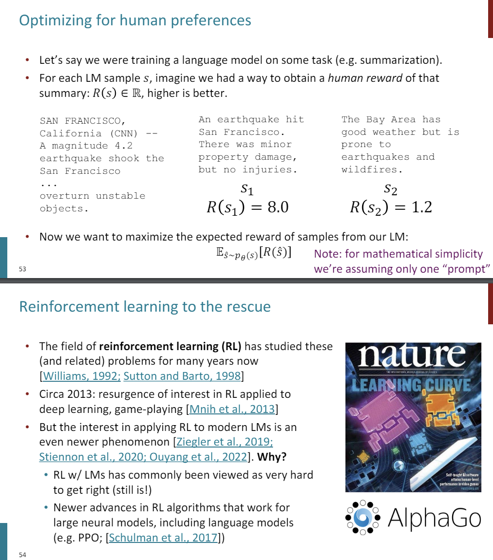 But it's clear that this objective is not actually aligned with what users want, which is maybe truth for creativity, or generally, just this idea of human preferences.