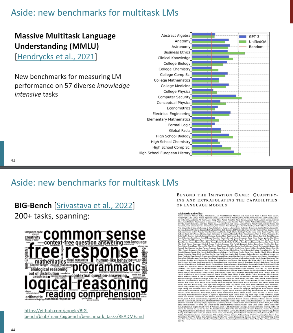 The scale of tasks that you want to evaluate this language model on is much greater. a lot of research has been going into building up these benchmarks for these massive multitask language models, and seeing to what degree they can do, not only just one task, but just a variety of tasks.