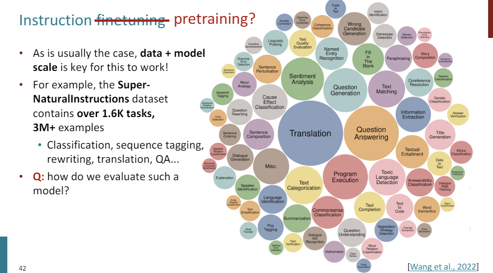 So data and scale is important. So as an example, one recent data set that was published for this is called the Super-NaturalInstructions data set, it contains over 1,600 tasks, containing 3 million examples.