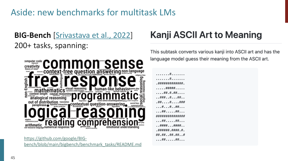 And it really contains some very esoteric tasks. So this is an example of one task included, where you have to -- given Kanji or Japanese character in ASCII Art, you need to predict the meaning of the character.