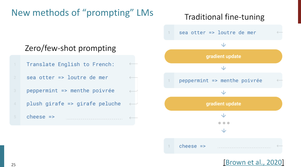 And in this new kind of paradigm of just prompting a language model, we just have a frozen language model, and we just give some examples and ask the model to predict the right answer.