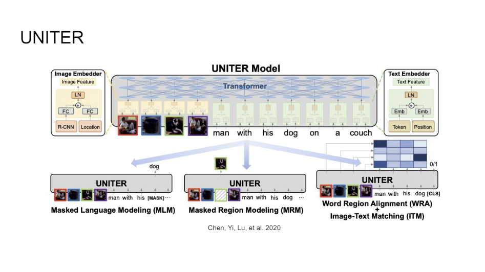 So there are many of these BERTs doing visual things. People really tried everything. Here's another one caled UNITER, where they added a bunch of different losses.