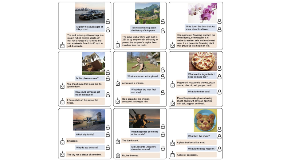 Here are some examples. It can really do different things from captioning to reasoning to visual question answering to lacation detection. So you can have a long conversation with this system.