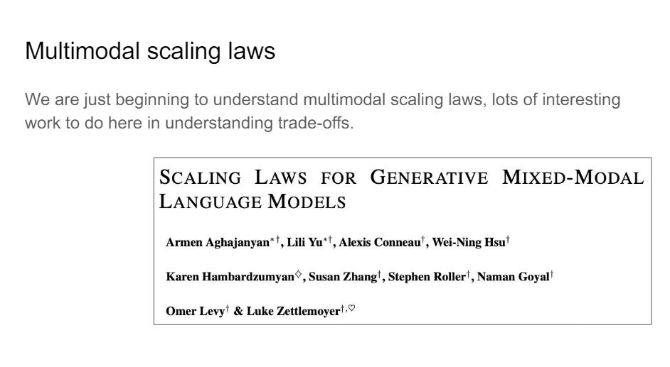 We're going to be looking at scaling laws and trying to understand really what is the relationship between the different modalities, which one do we want more of, that sort of stuff.