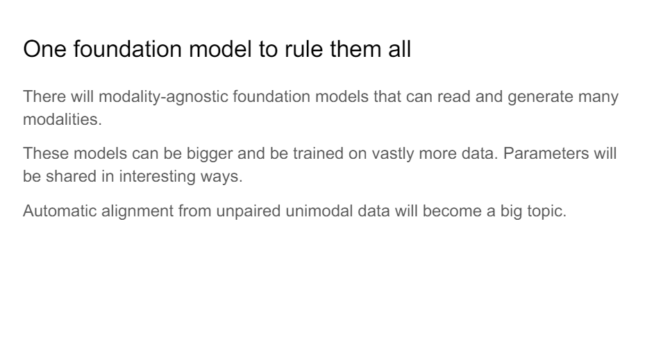 One foundation model is going to rule them all. So there will be many of these but a lot of them are going to have very similar traits, I think.