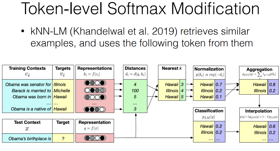 And another way is to do this every token. So we can do this by finding similar final embeddings and using this to influence the probabilities or approximating attention with nearest neighbors.