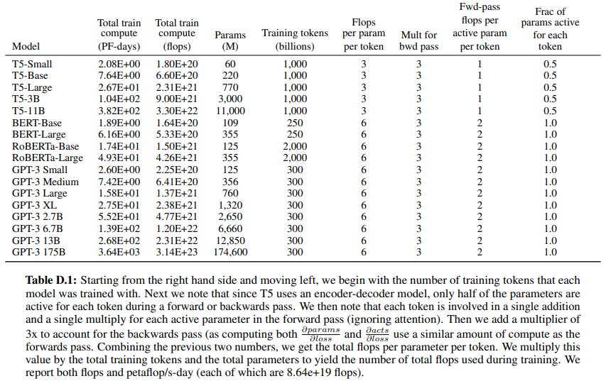 This appendix contains the calculations that were used to derive the approximate compute used to train the language models in Figure 2.2. As a simplifying assumption, we ignore the attention operation, as it typically uses less than 10% of the total compute for the models we are analyzing.