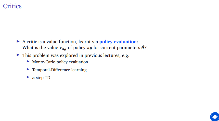 Now policy gradient algorithms they work really well and they underpin many of the current algorithms that people use in practice, but they don't actually exploit the critic all that strongly.
