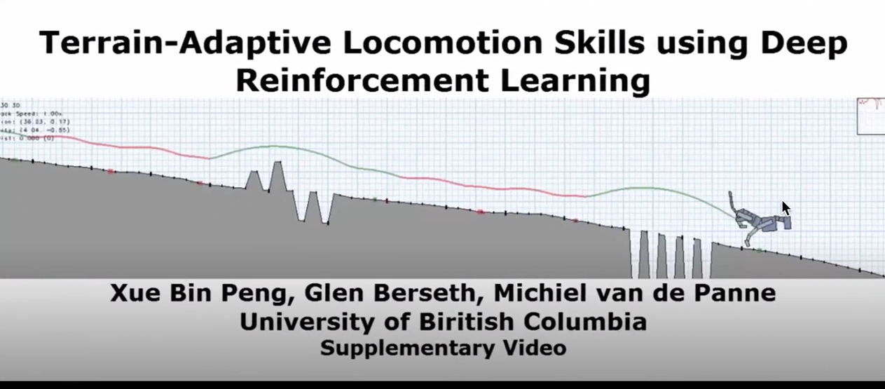 You can train these simulated animals running around. It could deal with several types of terrain. We can see that various different algorithms can be used to do things like this and to learn them.