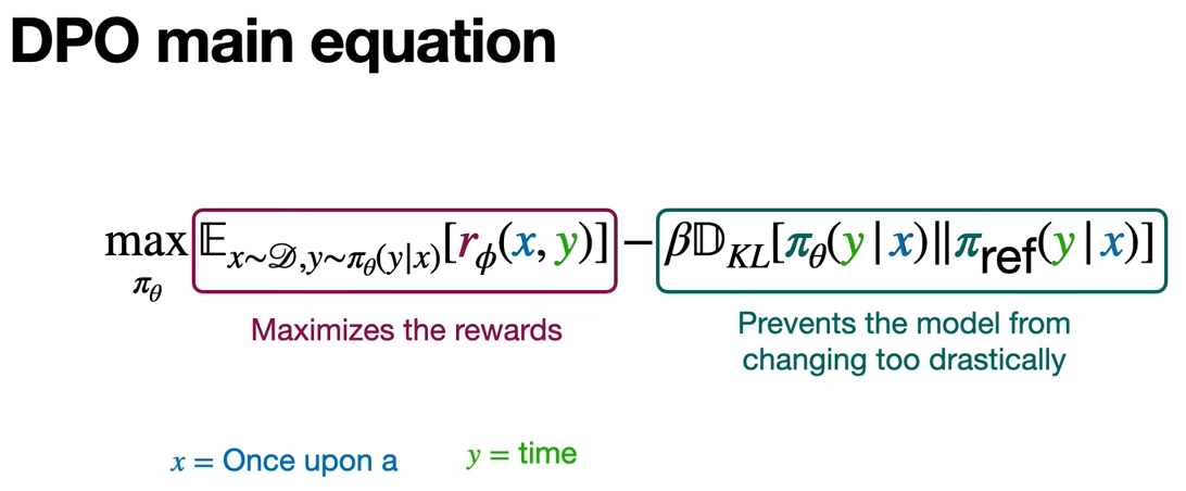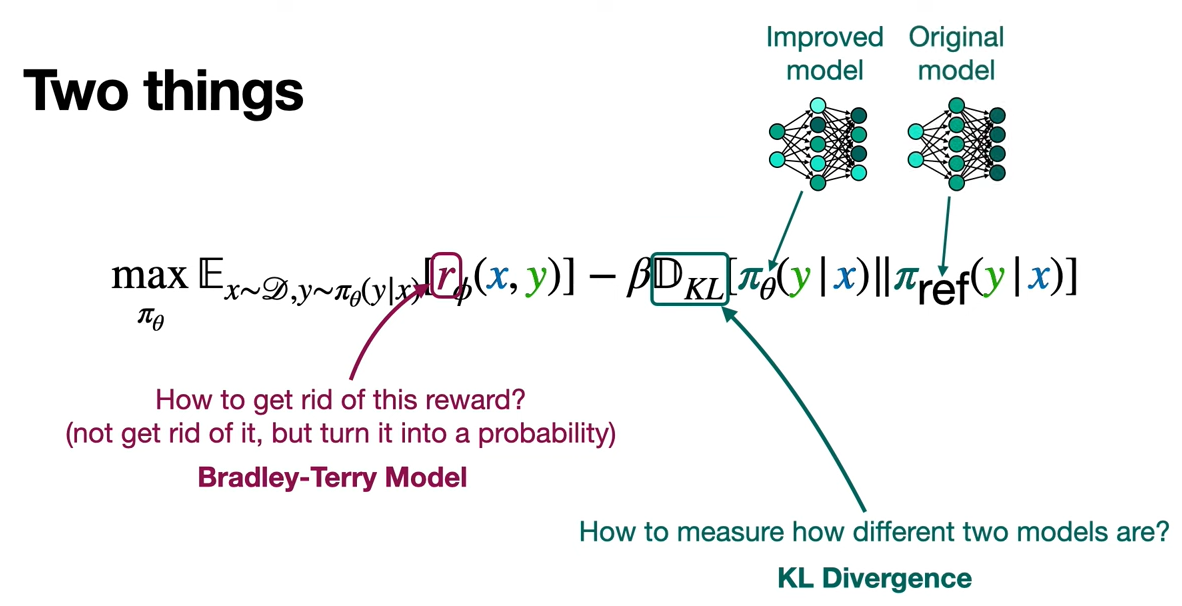 And we turn that into Direct Preference Optimization which only trains one neural network, the Transformer. It fine-tunes it using the elaborate loss function.