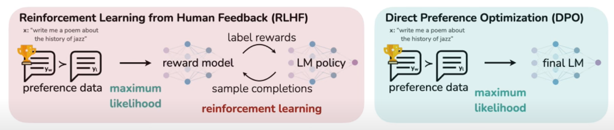 However, there's problem with our RLHF which is that, we have to train two neural networks. This is a long process and it may not be very efficient all the time. So we want to do directly. So we're going to do away with our RLHF and we're going to bring Direct Preference Optimization.