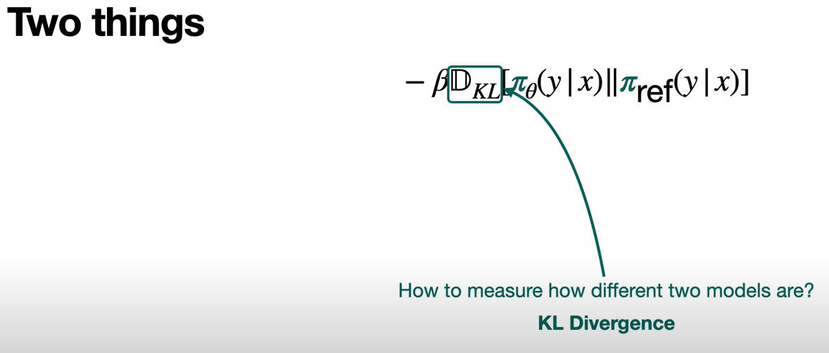 But we also want to punish the divergence with the previous model, because we want to make sure that the model does similarly on the other data that it doesn't change answers dramatically from others. Because we trust the model, we trust the original model. It's been trained already, so we need to fine-tune it but we don't need to change it drastically.