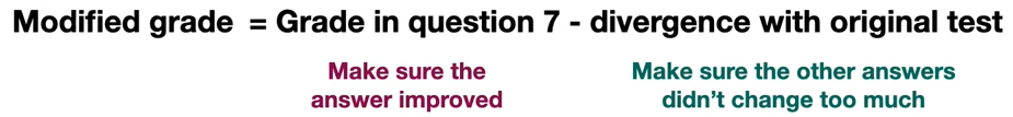 We're going to try the grade question 7 in a way that rewards the test that is similar to the original and punishes the test that is different from the original while still grading question 7. So we're going to come up with a modified grade for question 7.