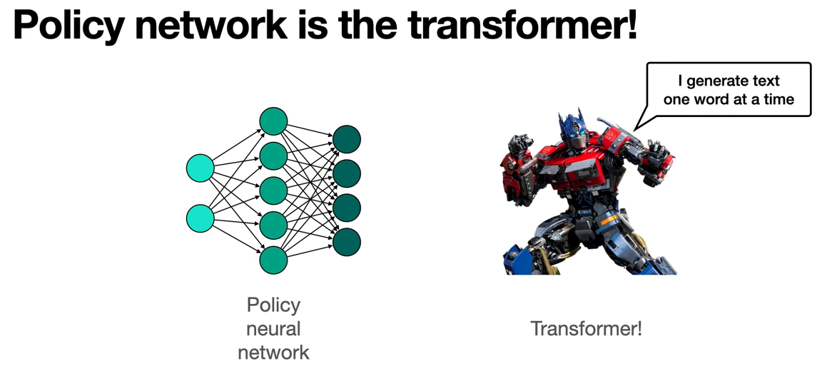 So the policy neural network is the Transformer model, so this is the one that talks. This is the model that when you input a prompt, it outputs the next word.