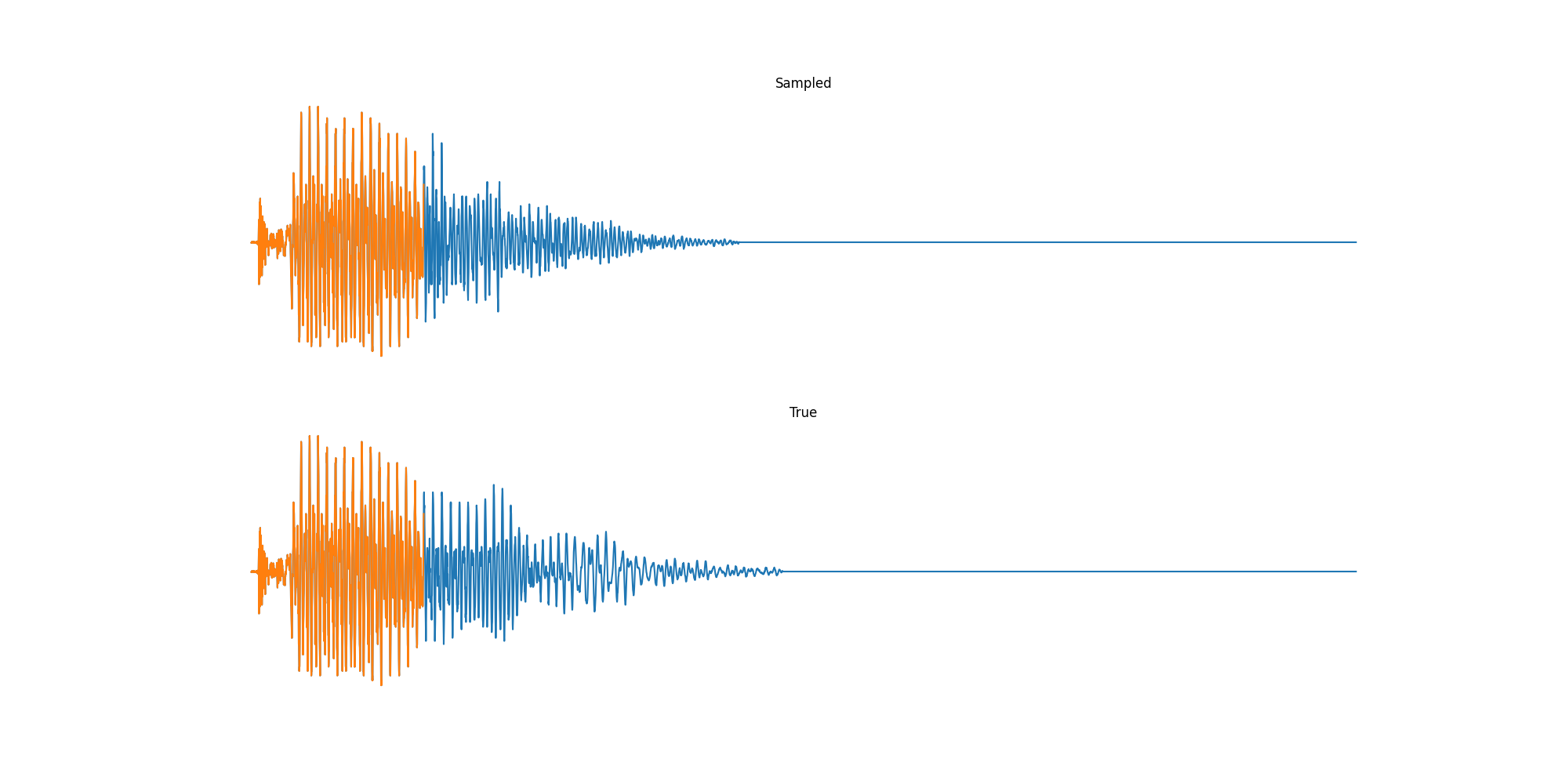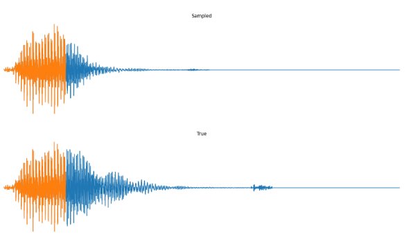 def init_recurrence(model, params, init_x, rng): variables = model.init(rng, init_x) vars = { "params": params, "cache": variables["cache"].unfreeze(), "prime": variables["prime"].unfreeze(), } print("[*] Priming") _, prime_vars = model.apply(vars, init_x, mutable=["prime"]) return vars["params"], prime_vars["prime"], vars["cache"]Putting this altogether we can sample from a model directly.