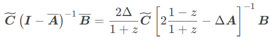 def K_gen_inverse(Ab, Bb, Cb, L): I = np.eye(Ab.shape[0]) Ab_L = matrix_power(Ab, L) Ct = Cb @ (I - Ab_L) return lambda z: (Ct.conj() @ inv(I - Ab * z) @ Bb).reshape()But it does output the same values,