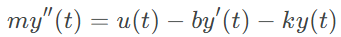 In this example, we consider the forward position of a mass attached to a wall with a spring. Over time, varying force is applied to this mass. The system is parameterized by mass (), spring constant (k), friction constant (b). We can relate these with the following differential equation: