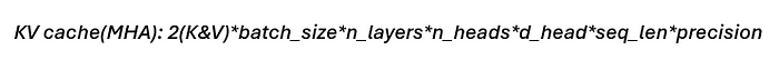 KV cache(MHA)의 메모리 요구량은 다음과 같이 계산식으로 계산할 수 있다.