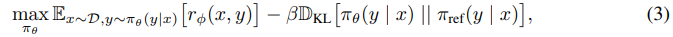 where β is a parameter controlling the deviation from the base reference policy π_ref, namely the initial SFT model π^SFT. In practice, the language model policy πθ is also initialized to π^SFT. The added constraint is important, as it prevents the model from deviating too far from the distribution on which the reward model is accurate, as well as maintaining the generation diversity and preventing mode-collapse to single high-reward answers. Due to the discrete nature of language generation, this objective is not differentiable and is typically optimized with reinforcement learning. The standard approach [51, 40, 1, 28] has been to construct the reward function